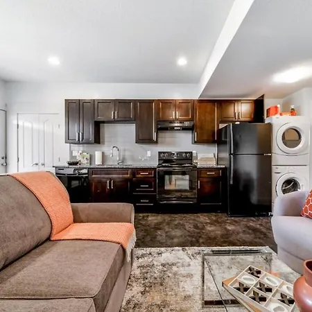 顧客の快適さのために設備の整った台所も備わっています。 Bright Modern Suites-King Beds-Nflx-Wifi-Longstaysはエドモントン市中央空港から車で15分の場所にあります。